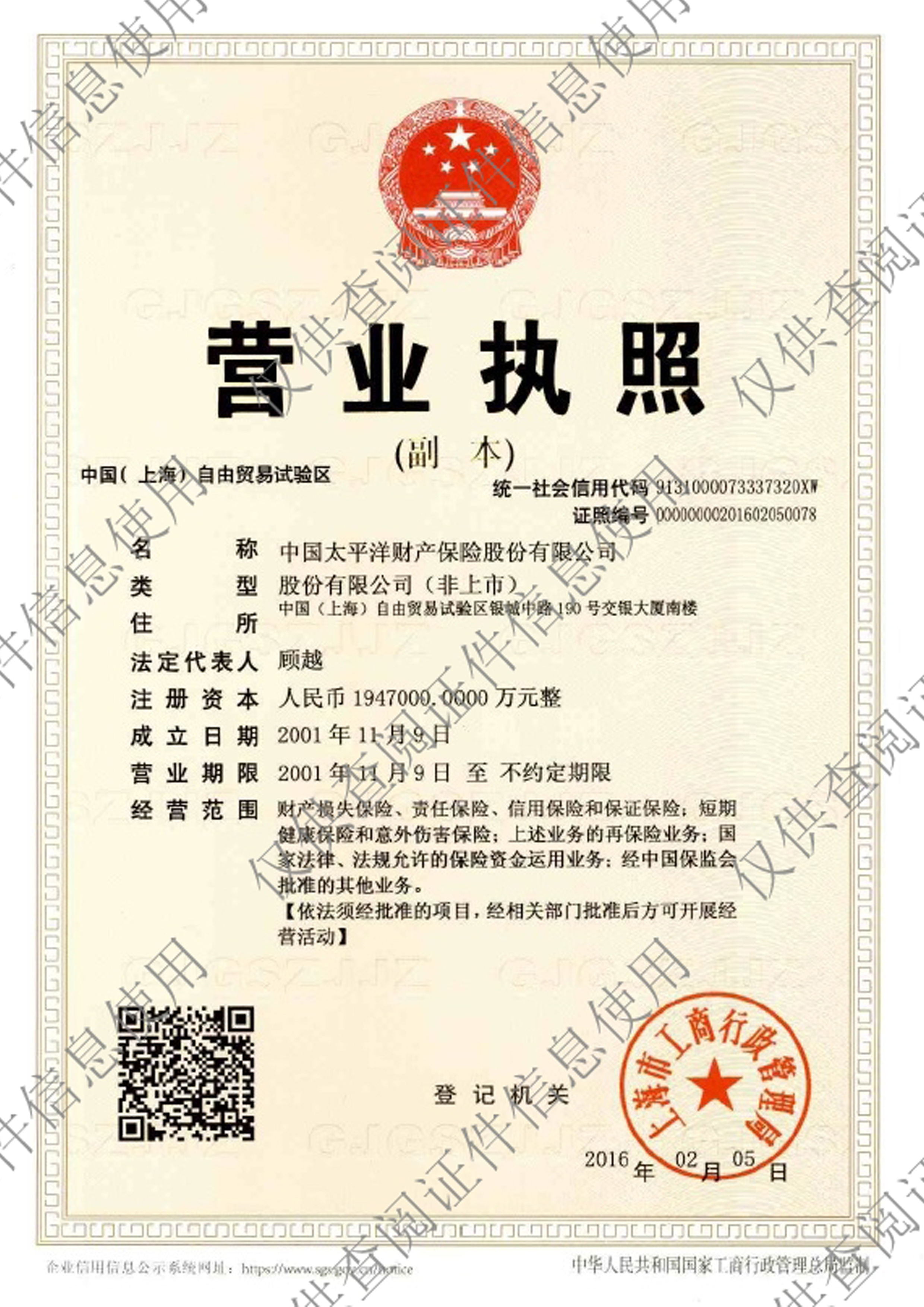 中国太平洋财产保险股份有限公司